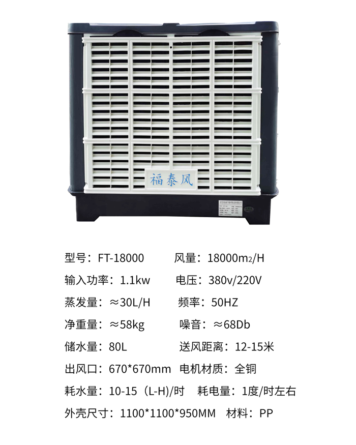 福泰環(huán)??照{(diào)性能穩(wěn)定在越炎熱的天氣下降溫的效果越好。適用于開敞式及半開敞式環(huán)境,能夠直接輸送自然風(fēng)及輸送降溫后的涼風(fēng)。室外新鮮空氣經(jīng)福泰蒸發(fā)式冷氣機(jī)過濾、降溫后向室內(nèi)源源不斷的大量輸送,將室內(nèi)帶有異味、粉塵和混濁悶熱的空氣排出室外,同時(shí)兼顧換氣降溫及增加空氣含氧量等多種效果。