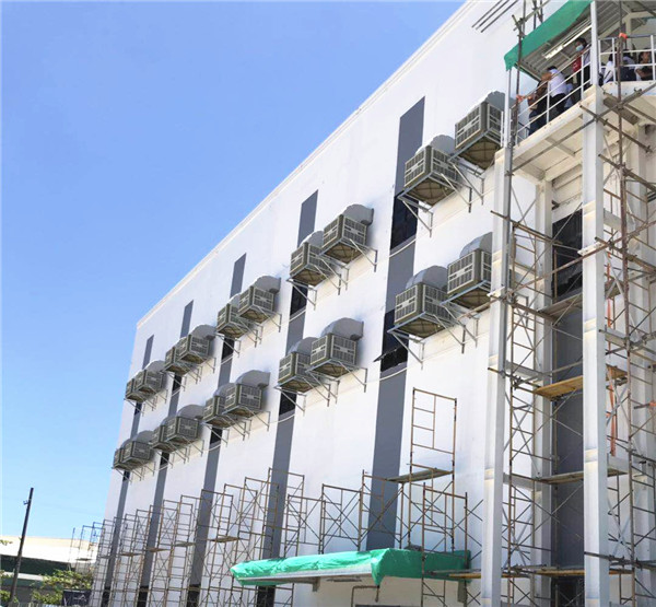 使用福泰水簾風(fēng)機(jī)一體機(jī)(水簾和負(fù)壓風(fēng)機(jī)合成后安裝在廠房的一邊,送風(fēng)距離遠(yuǎn),降溫效果明顯)這些降溫方式適合于工廠,耗電量低同時可以改善工作環(huán)境。不同的廠房車間對換氣次數(shù)、噪音要求、投資運(yùn)算有不同的要求,對于客戶的需求,我們可以提供不同型號、不同款式的降溫產(chǎn)品和工廠車間降溫解決方案。