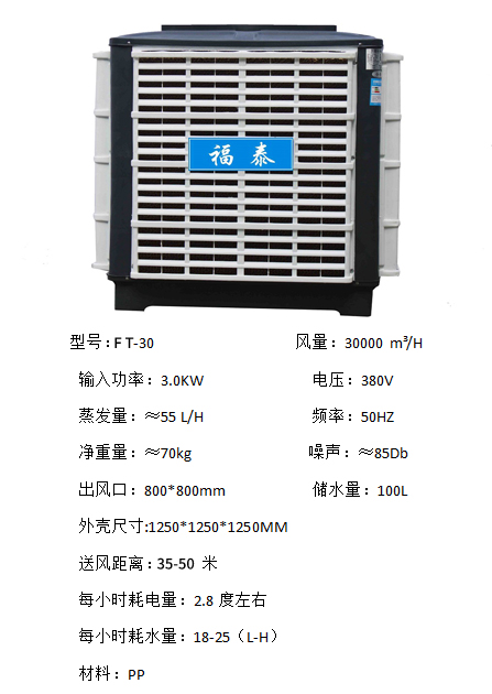 福泰環(huán)保空調(diào)性能穩(wěn)定在越炎熱的天氣下降溫的效果越好。適用于開敞式及半開敞式環(huán)境,能夠直接輸送自然風(fēng)及輸送降溫后的涼風(fēng)。室外新鮮空氣經(jīng)福泰蒸發(fā)式冷氣機(jī)過濾、降溫后向室內(nèi)源源不斷的大量輸送,將室內(nèi)帶有異味、粉塵和混濁悶熱的空氣排出室外,同時兼顧換氣降溫及增加空氣含氧量等多種效果。